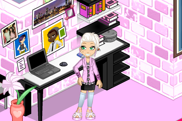 Hair-I find this hair quiet fascinating! It's nicely designed with a lil bun thingy and nice earrings! It's got a nice coloring with everything. Pink earrings and a white-ish blonde hair! I really love the design of this hair!